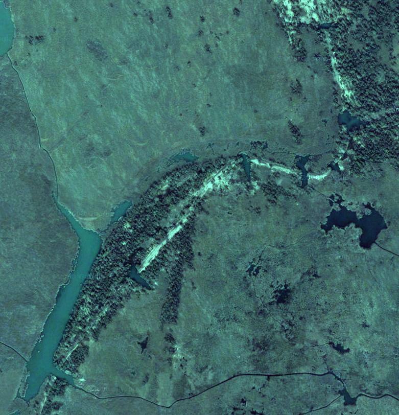 На фотографии четко видны контуры дороги. Но она периодически прерывается озерами, через которые нет мостов.